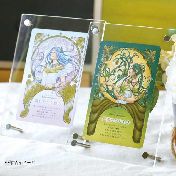 ご依頼者様のお話を通して感じたことを、画家のフィルターを通して色や形に変え一人の女神として描きます。